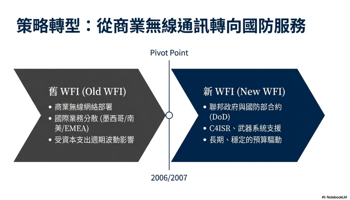【看圖說故事】WFI 在 2006 年出現的「終止營運損失」是一個關鍵轉折。當時 WFI 決定剝離獲利不穩定的商業無線服務,轉向門檻更高、具備國家安全屬性的硬體與科技領域。