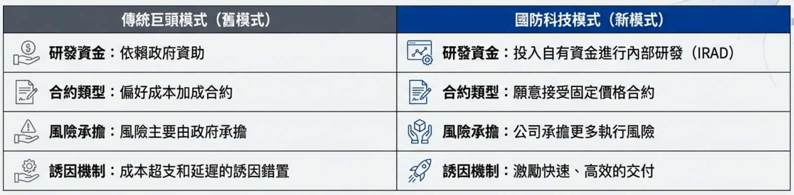 傳統的國防工業是高風險的業務,超大型承包商冒著未來風險,爭奪數十億美元的新戰鬥機、船艦或裝甲車的合約,這些合約通常都是贏家全拿,一旦輸掉競標的公司就幾乎可以直接宣布完蛋;