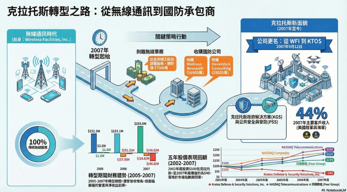 這些收購讓 WFI 逐漸築起護城河。國防合約不僅要求技術,更要求擁有大量持證員工 (Security Clearance Holders),新更名的 Kratos Defense & Security Solutions 在 2007 年得以完成品牌重塑。