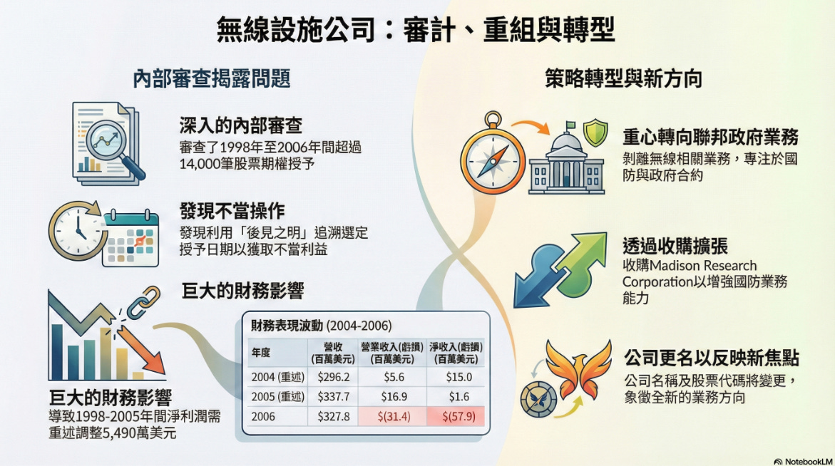 資產剝離讓 WFI 從低利潤、高風險的電信基建中抽離,2006 年因此認列高達 1830 萬的商譽減值與 1260 萬的終止經營損失,但資本重新配置 (Capital Reallocation)也讓其回收現金,為後續的併購提供關鍵的財務緩衝。
