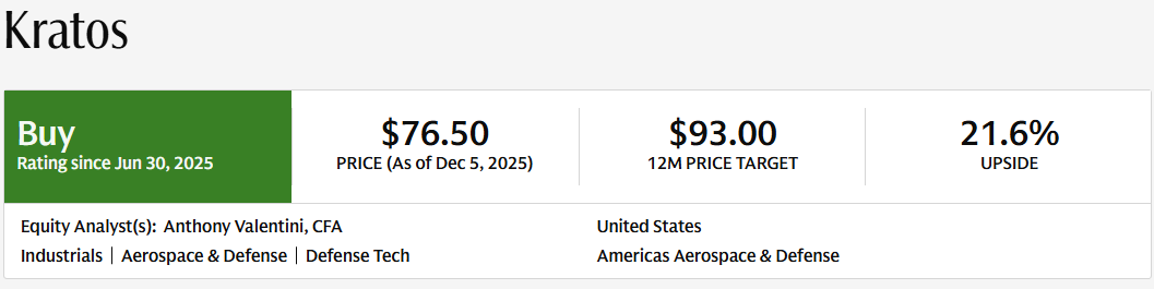 Kratos (KTOS):在無人機領域具有先發優勢,其產品以較低價格滿足技術要求,符合美國國防部對成本效益的日益重視。