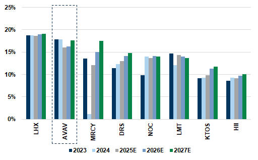 AeroVironment (AVAV):其低成本系統(如「彈簧刀」遊蕩彈藥)在實戰中證明了非對稱作戰的巨大影響力,預計將比傳統國防同業增長更快。AeroVironment 的低成本系統在俄烏衝突中證明大量廉價但先進的技術,能有效對抗少量昂貴的軍事平台,是未來國防科技的絕對發展重點。