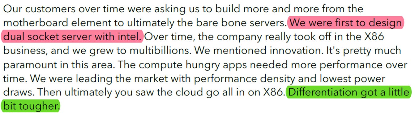 SMCI 假設(Assumptions)客戶有客製化需求,因此聚焦設計能力,但營收成長力度似乎不強;