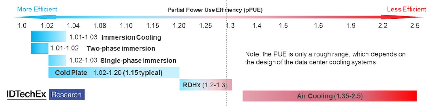 浸入式 (Immersion Cooling)的缺點:雖具有出色的散熱性能,pPUE 低至 1.01,但是伺服器直接浸入液體冷卻劑中,需要對現有伺服器主機板進行重大修改,還要考慮伺服器和冷卻液之間的材料相容性等因素,市場缺乏足夠的專業知識和經驗來實施和管理該技術,都增加初期實施過程的複雜性和額外成本,持續的維護和營運成本也可能更高,但散熱效率高,從長遠來看則相對具有成本效益。