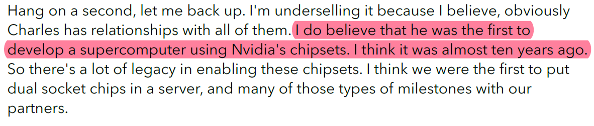 兩間公司都是在 1993 年成立的,矽谷總部相距只有 15 分鐘車程,聽說 NVDA 如果有新的 GPU 要做測試,都會找 SMCI 幫忙,這樣的關係算好嗎?